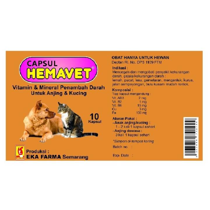 Jual Hemavet 10 Kapsul Vitamin Penambah Darah Untuk Anjing Kucing Eka Farma Jakarta Barat Subscane Shop Tokopedia